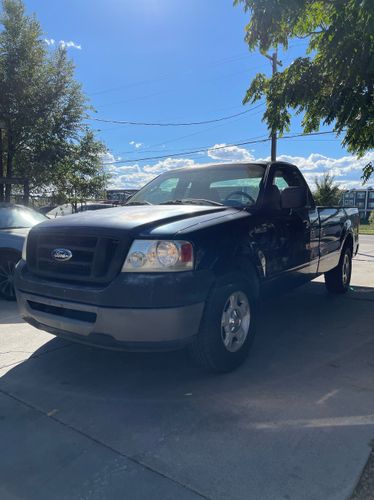This 2006 Ford F-150 XL is a true workhorse built for hauling, towing, and tackling tough jobs with ease. Powered by a 5.4L 3V V8 engine paired with a 4-speed automatic transmission, this rear-wheel drive truck delivers solid performance and reliability. With a 7050-lb GVWR, long 8-foot steel Styleside bed, and heavy-duty suspension including dual front shock absorbers and rear leaf springs, it's ideal for both job sites and weekend hauls.