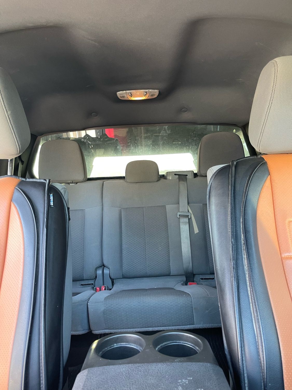 Inside, you get front captain’s chairs with a full center console, a power driver seat (6-way), flip-up second row, carpeted floors & mats, leather-wrapped steering wheel, tilt steering, power windows/locks, and adjustable pedals. Convenience and tech include SYNC®, AM/FM CD with SiriusXM readiness, Bluetooth/voice functions, electrochromic rearview mirror, compass/outside temp display, keyless entry, illuminated entry, and a tailgate with integrated flexible step. Safety features cover the essentials with 4-wheel disc ABS, Roll Stability Control (RSC), side airbags (1st & 2nd row), tire-pressure sensors, and automatic headlamps.