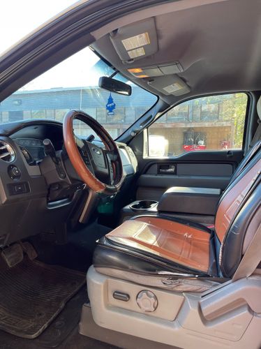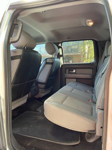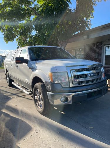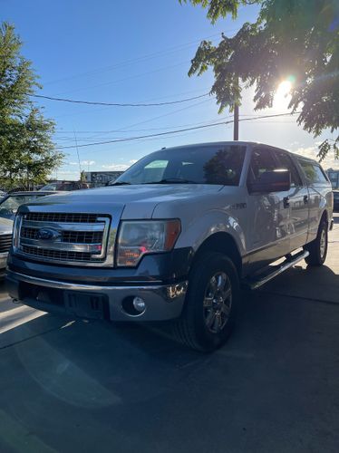The 2013 Ford F-150 XLT SuperCrew 4x4 blends full-size capability with everyday comfort. Powered by a 3.5L Ti-VCT V6 paired to a 6-speed automatic (6R80) and part-time 4WD with electronic transfer case, it’s set up for work and weekends alike. A 157" wheelbase with the 6.5-ft Styleside box, heavy-duty engine cooling, extended-range fuel tank, and Heavy-Duty Trailer Tow Package (with chrome front tow hooks) make hauling and towing straightforward, while P275/65R18 A/T OWL tires on 18" chrome-clad wheels, chrome grille & bumpers, fog lamps, running boards (elliptical chrome), and 4x4 decals give it a confident, clean look.