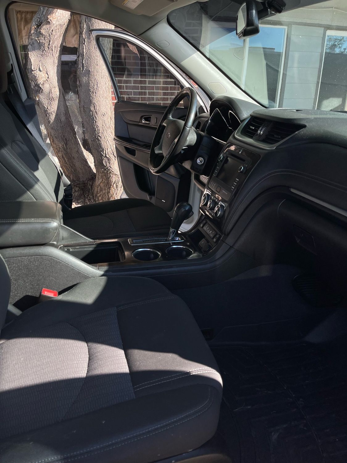 The 2015 Chevrolet Traverse LT Luxury Edition AWD is a family-ready SUV that blends space, power, and upscale comfort. Powered by a 3.6L V6 SIDI engine producing 281 horsepower and paired with a 6-speed automatic transmission, it delivers smooth performance and confident handling. The all-wheel-drive system, paired with traction control and electronic stability control, provides added security in all driving conditions.